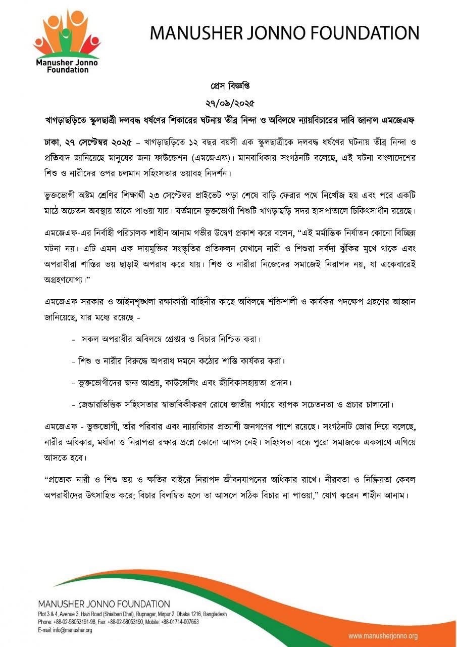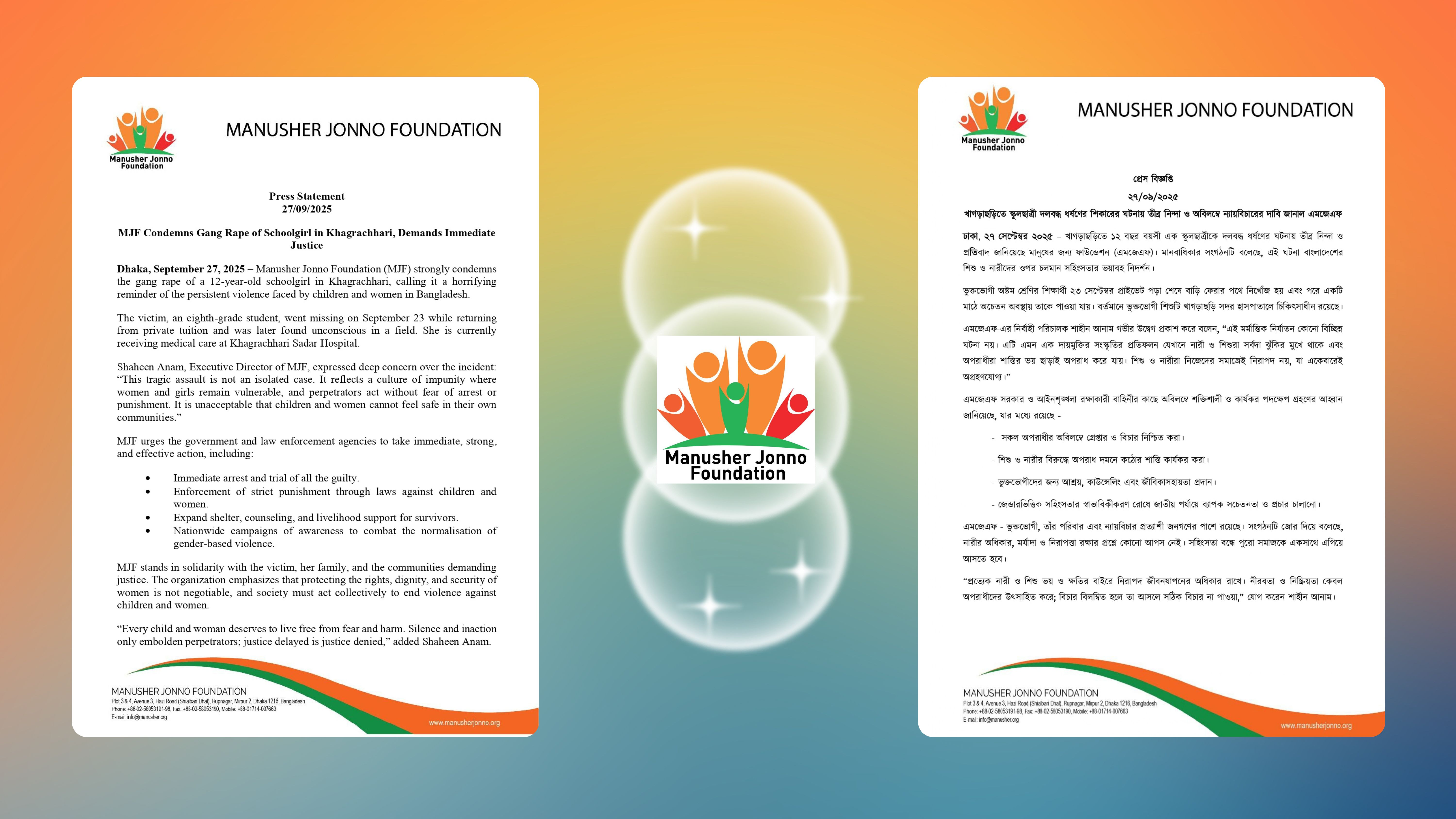 Manusher Jonno Foundation (MJF),a non-government and non-profit organisation works with local organisations to improve the well-being of poor and marginalised communities.